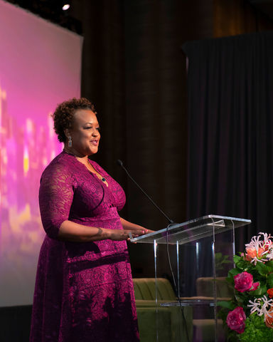 Pastor Bryan Carter, Concord Church, led the opening prayer, followed by recognition of this year’s ProtectHER Award recipients: Southwest Airlines and Young Men’s Service League (YMSL), shining examples of organizations that support the protection and value of women and girls in the community. NFNL Chief Development Officer Priya Murphy introduced a video about this year’s recipients, sponsored by Thomson Reuters. Accepting the awards were YMSL President, CEO and Founder Pam Rosener and Managing Director of Corporate Responsibility for Southwest Airlines Laura Nieto.