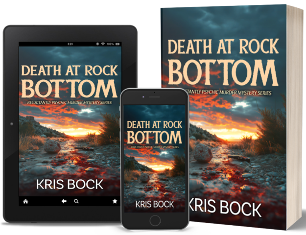 Death at Rock Bottom is the second book in author Kris Bock’s clever and unique Reluctantly Psychic Murder Mystery series featuring geologist and rock collection curator Petra Cloch and her new friends and colleagues at the quirky Banditt Museum in small Bonneville, New Mexico. When Petra’s colleague, Liberty, suspects the death of her old friend, petroleum engineer Frank Underwood, is no accident, the two enlist the help of their coworker, Haven, and the women of their monthly book club to investigate the circumstances.