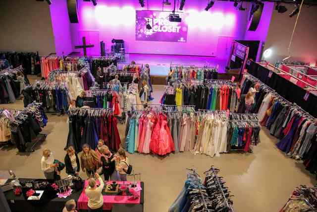 Community and church members, businesses, organizations, and local groups donate dresses, shoes, wraps, jewelry, handbags, and other accessories for this annual event. Some dresses have never been worn.
